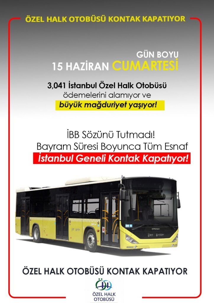 İSTANBUL’Da Özel Halk Otobüsleri 15 Haziran Cumartesi günü çalışmayacağını açıkladı.